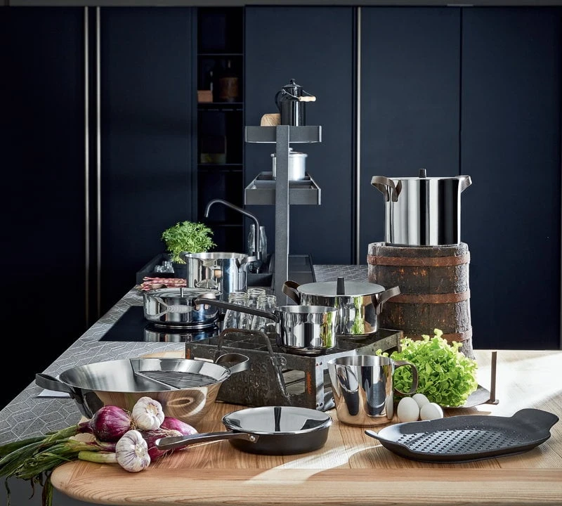 Alessi’s Edo collection got its name from two different directions: the name refers to the Latin word “edere”, meaning “I eat”, and Edo is also an ancient name of the city of Tokyo. Italian traditions and Japanese influences unite in the collection into a smooth, seamless elegance. Patricia Urquiola’s Spanish roots are also visible in the shapes of the lids that were inspired by Basque chapelas. The most recognizable details of the Edo pots and pans are the brown, curved handles reminiscent of fabric ribbons. Edo stirs together various elements, resulting in a harmonious, functional and inspiring collection that invites you to experiment and enjoy your time in the kitchen.