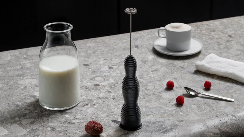 Alessi’s Pulcina milk frother combines Michele de Lucchi’s unique aesthetic style with high-quality Italian design. Launched in 2022, the Pulcina milk frother has an eye-catching, flowing shape consisting of small layers and complemented with an ergonomic handle. What’s more, you’ll never need to change batteries, as the Pulcina milk frother is charged using a USB-C cable. The power cable is included in the package.